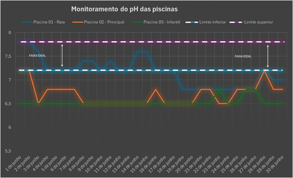 O pH e a alcalinidade influenciam a eficiência do tratamento. Valores inadequados reduzem a ação do cloro, aumentam o consumo de produtos químicos e causam desconforto aos usuários.